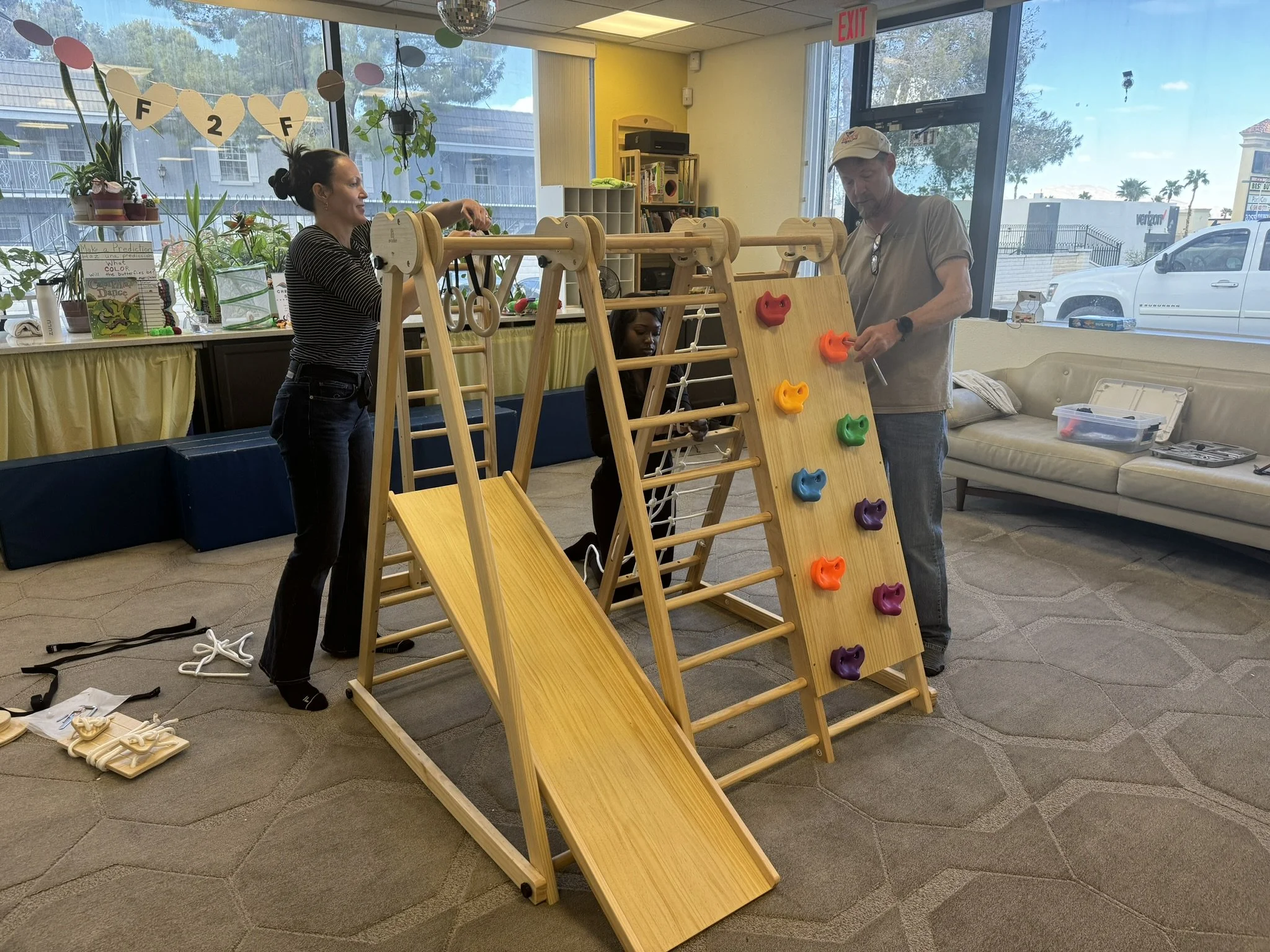 We recently revitalized our gross motor play area thanks to a grant from the Las Vegas Rotary Club. The materials we had prior were well-loved for MANY years!