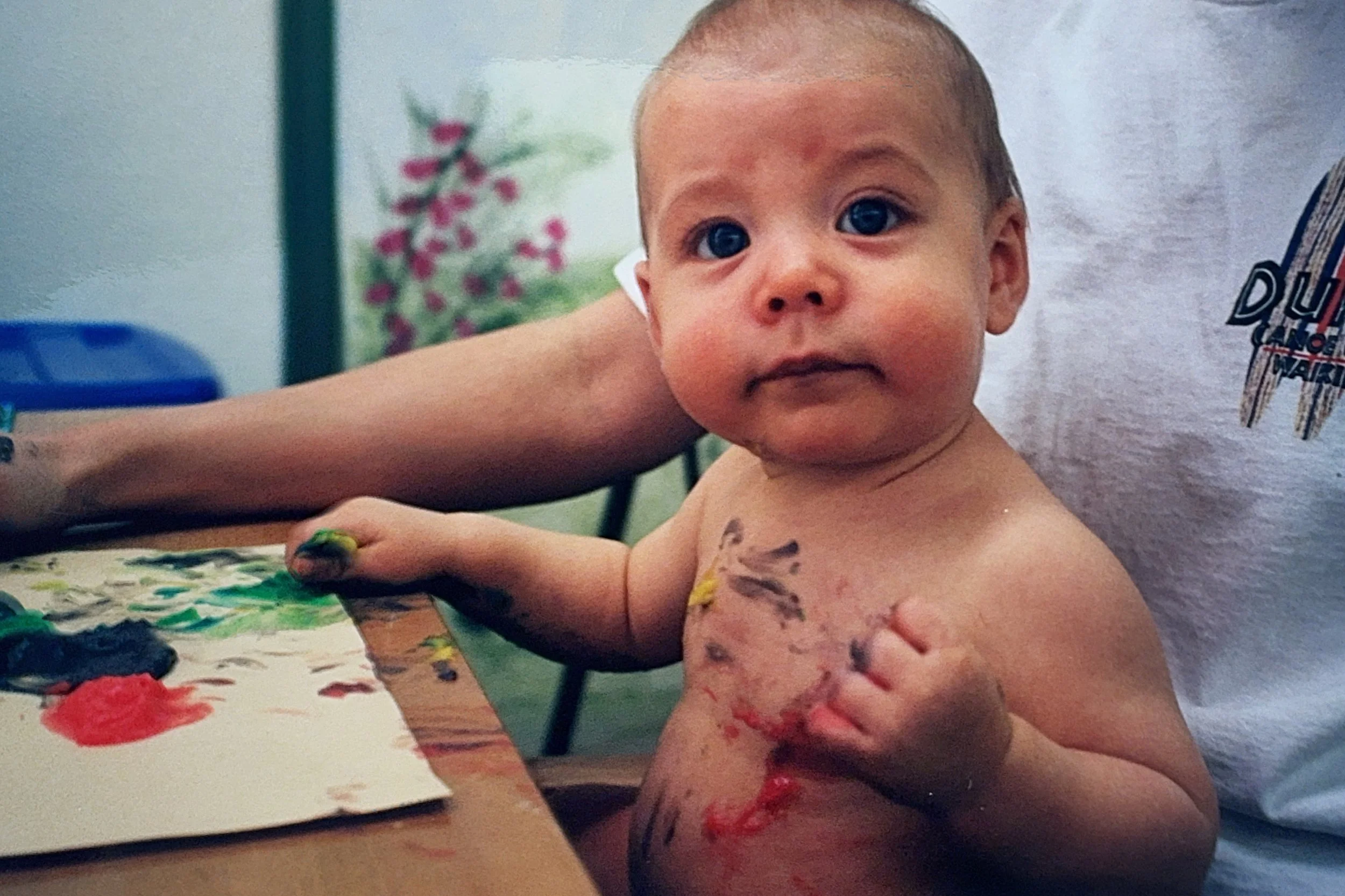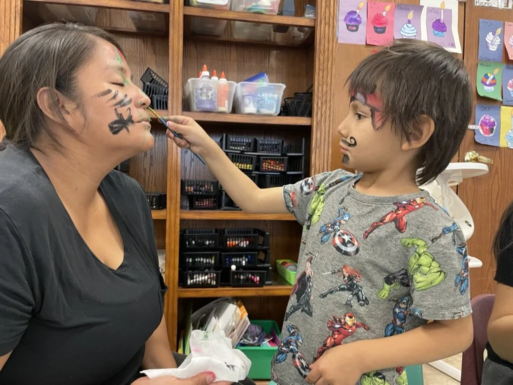 Some forms of play never get old. Painting is great for fine motor skills. Painting on Mom - that’s just for fun!
